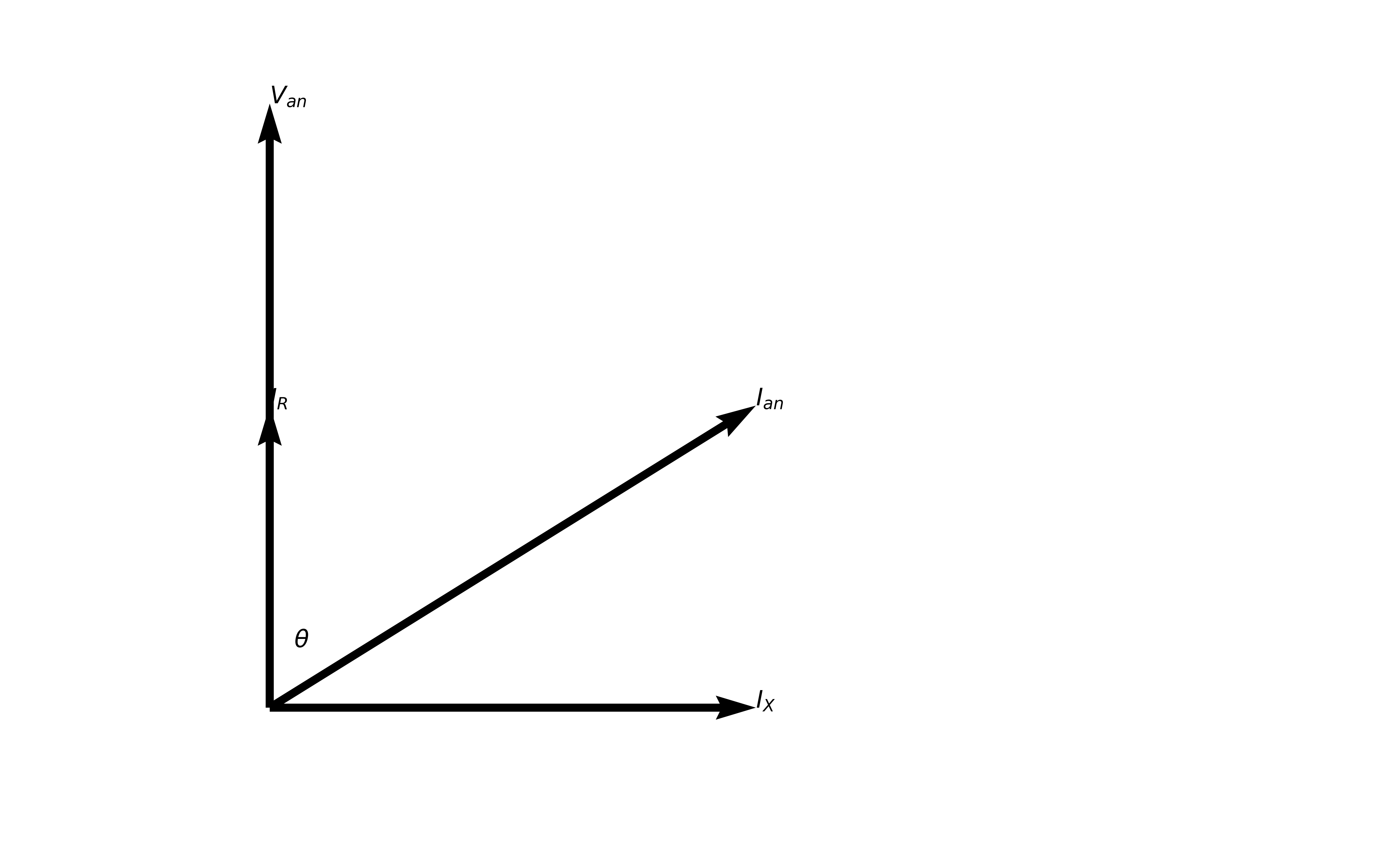 ax.text(5, 0, r'$I_{X}$')ax.text(0, 5, r'$I_{R}$')ax.text(5, 5, r'$I_{an}$')ax.text(0, 10, r'$V_{an}$')ax.text(0.25, 1, r'$\theta$')