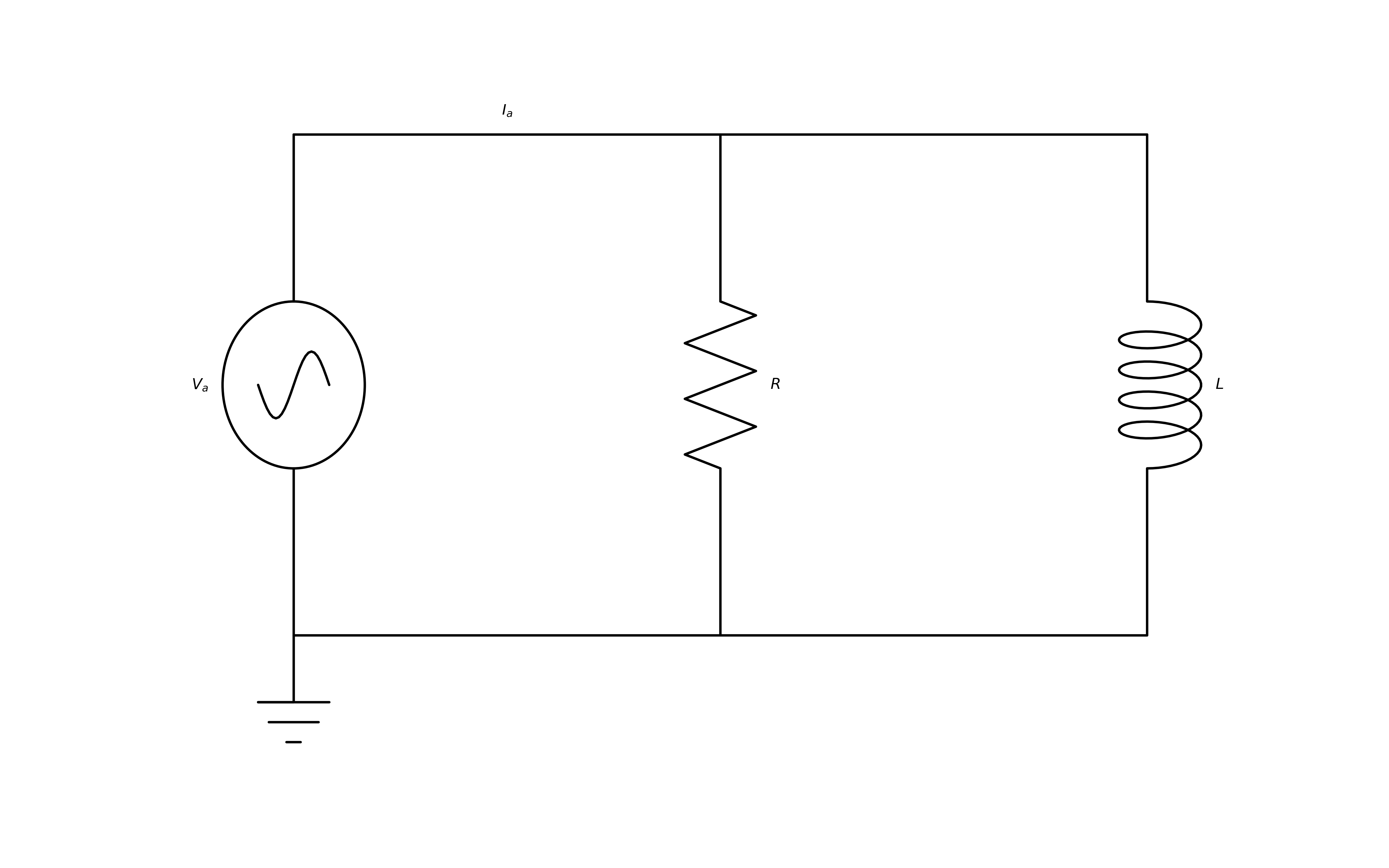 V1 = d.add( e.SOURCE_SIN, label='$V_{a}$' )L1 = d.add( e.LINE, d='right', label='$I_{a}$')d.push()R = d.add( e.RES, d='down', botlabel='$R$' )d.pop()d.add( e.LINE, d='right' )d.add( e.INDUCTOR2, d='down', botlabel='$L$' )d.add( e.LINE, to=V1.start )d.add( e.GND )d.draw(ax=ax, show=False)plt.savefig("./schemdraw.png", dpi=300, transparent=True)